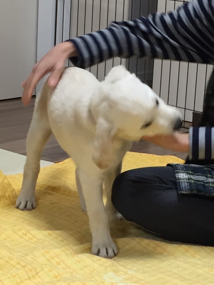 Lちゃんは下痢をすることもなく、順調に育っているので、今日から1日3回のドッグフードが、80から90gに増えました。