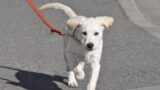 相変わらずのにおい嗅ぎと、初めてのパピーコートが少し気になったようですが、訓練士さんの魔法にかかり、Lちゃん、上手に歩けました✌️